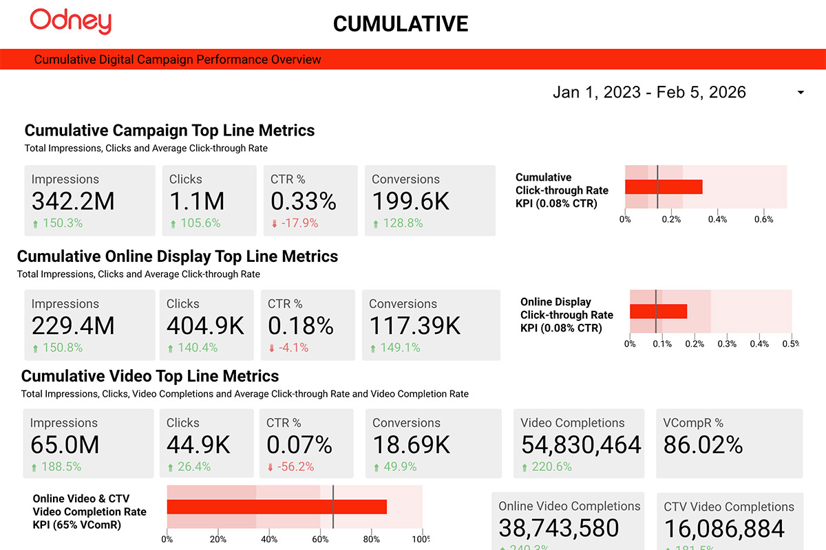 At Odney, we build custom dashboards for every client so their data tells a clear story.